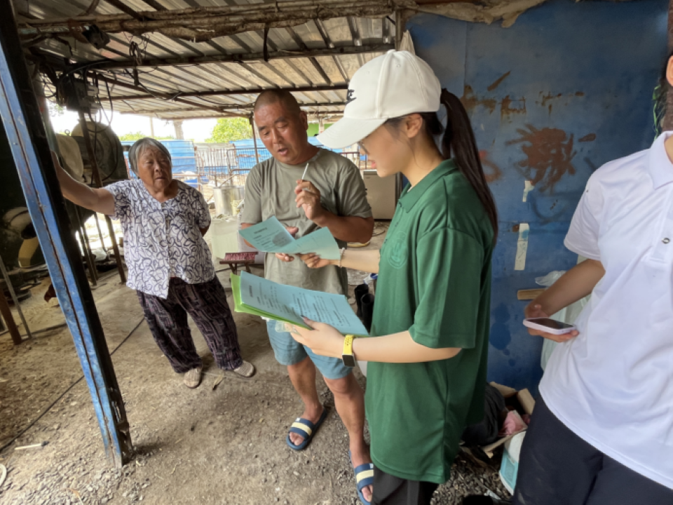依托在动监站的调研成果,服务团在刘向明副站长带领下走访子良养殖场,团队师生与场主深度互动,聚焦养殖核心环节细致询问,涵盖养殖规模、存栏量、存活率等基础情况,生物安全措施如车辆消毒流程、人员防护要求等,疫病防控方面的疫苗接种、隔离处理、监测记录等,随后结合专业知识提出优化消毒流程、调整饲料成分、完善监测台账等可实施建议,同时团队成员分工协作,规范采集养殖场舍空气、饮用水等样本,近距离观察养殖环境并记录问题,还围绕动物福利和疫病防控难点与场主深入交流,将理论联系实际,让团队成员更清晰认识养殖场运作,提升了运用专业知识解决实际问题的能力。
