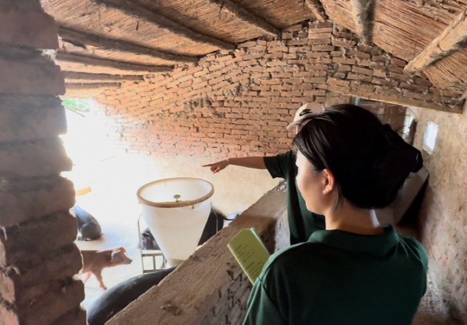 结合“田间课堂”,服务团成员在李站长和张大爷的陪同下,实地查看张大爷家的传统砖砌猪舍。团队成员细致观察猪舍的自然通风、温湿度状况以及粪便清理与处理方式等关键环节。充分肯定张大爷在现有条件下付出的努力和管理成效,同时结合传统砖砌猪舍的特点,指出需优化通风死角、改进日常清扫保持干燥、更有效处理粪污等问题,并现场提出简单易行、成本较低的改进建议。李站长也从防疫角度进行了补充指导。
