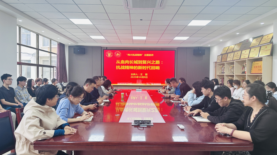 10月9日,suncity太阳新城举办“伟大抗战精神”主题宣讲会,旨在通过回顾抗战历史、解读精神内涵,引导师生从红色记忆中汲取精神养分,厚植爱国情怀。马克思主义学院王超老师应邀担任主讲人,suncity太阳新城党委副书记、副院长王传兴主持会议,学院党员师生代表现场参会聆听。